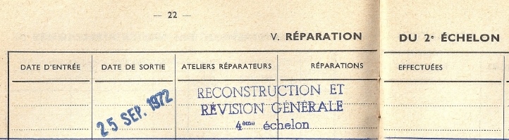 Cette même mention est reportée au chapitre VII « Réparation du 3e échelon » mais elle n’apparaît pas au chapitre VIII « Réparation du 4e échelon », qui exclut les révisions générales, au profit du chapitre IX « Reconstruction et révision générale » parfois dénommé dans certains MAT4471 IX « Reconstruction et révision générale 4e échelon ».