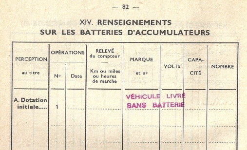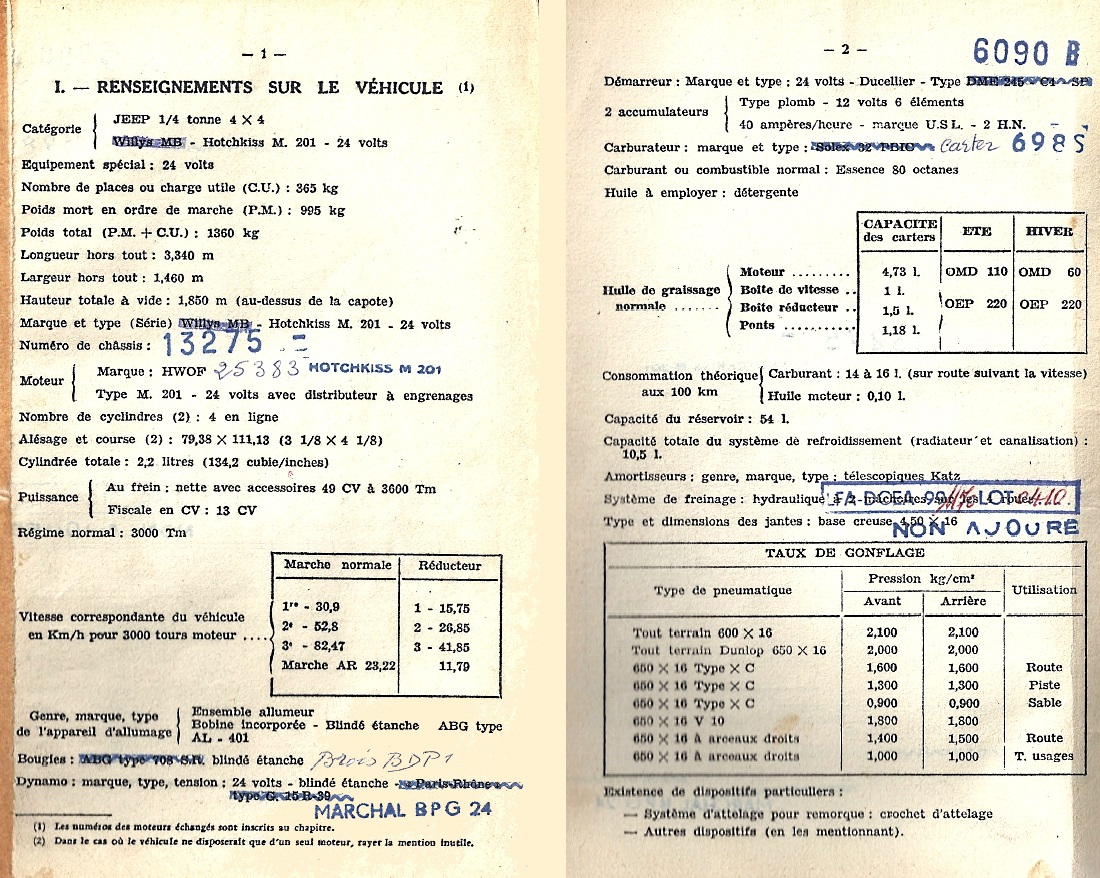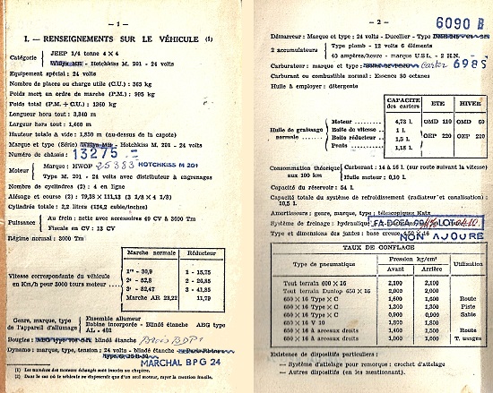Lorsqu’une jeep est « recettée », c’est à dire acceptée comme « bonne pour le service » par l’inspecteur technique du matériel, elle est considérée comme à nouveau neuve par l’armée. Un nouveau carnet du véhicule lui est ouvert.
